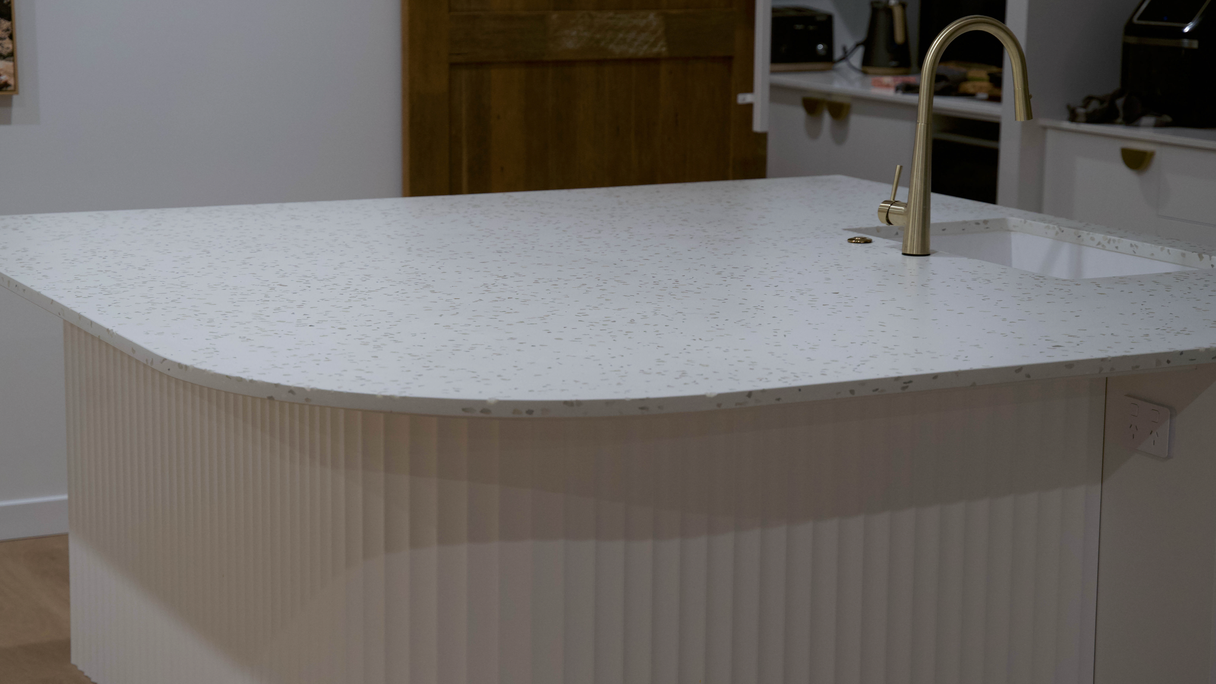 Our terrazzo pieces are poured by hand in our Gold Coast studio and built to make an impact — whether it’s a kitchen island, a curved vanity, or full-height wall panels. Made-for-you terrazzo with your choice of colours and aggregate blends.